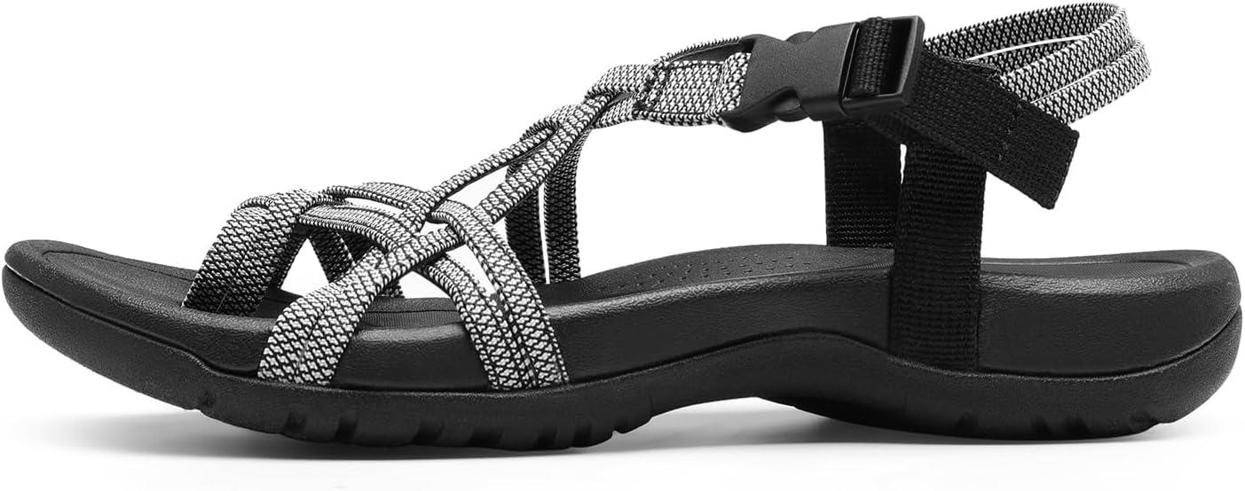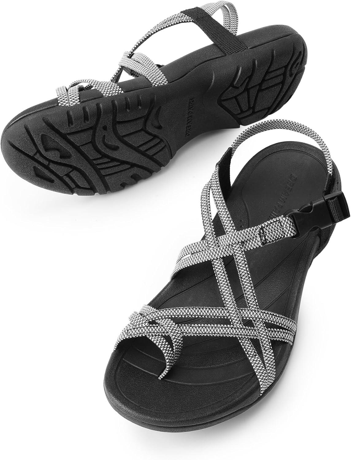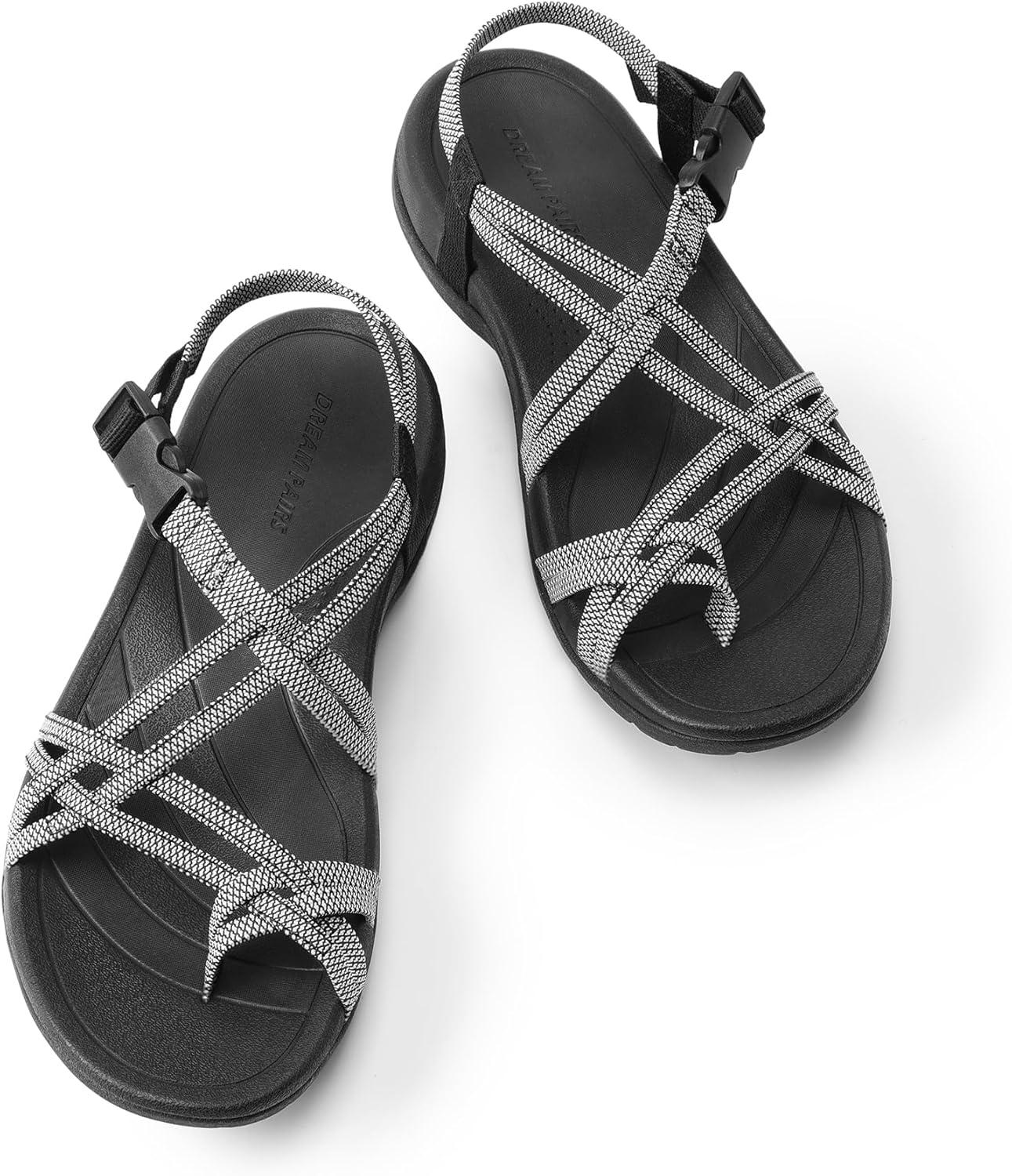 DREAM PAIRS Women’s Walking Comfort Sport Athletic Sandals With Arch Support Elastic Strap Casual Hiking Outdoor Beach Summer Sandal(Black/White)