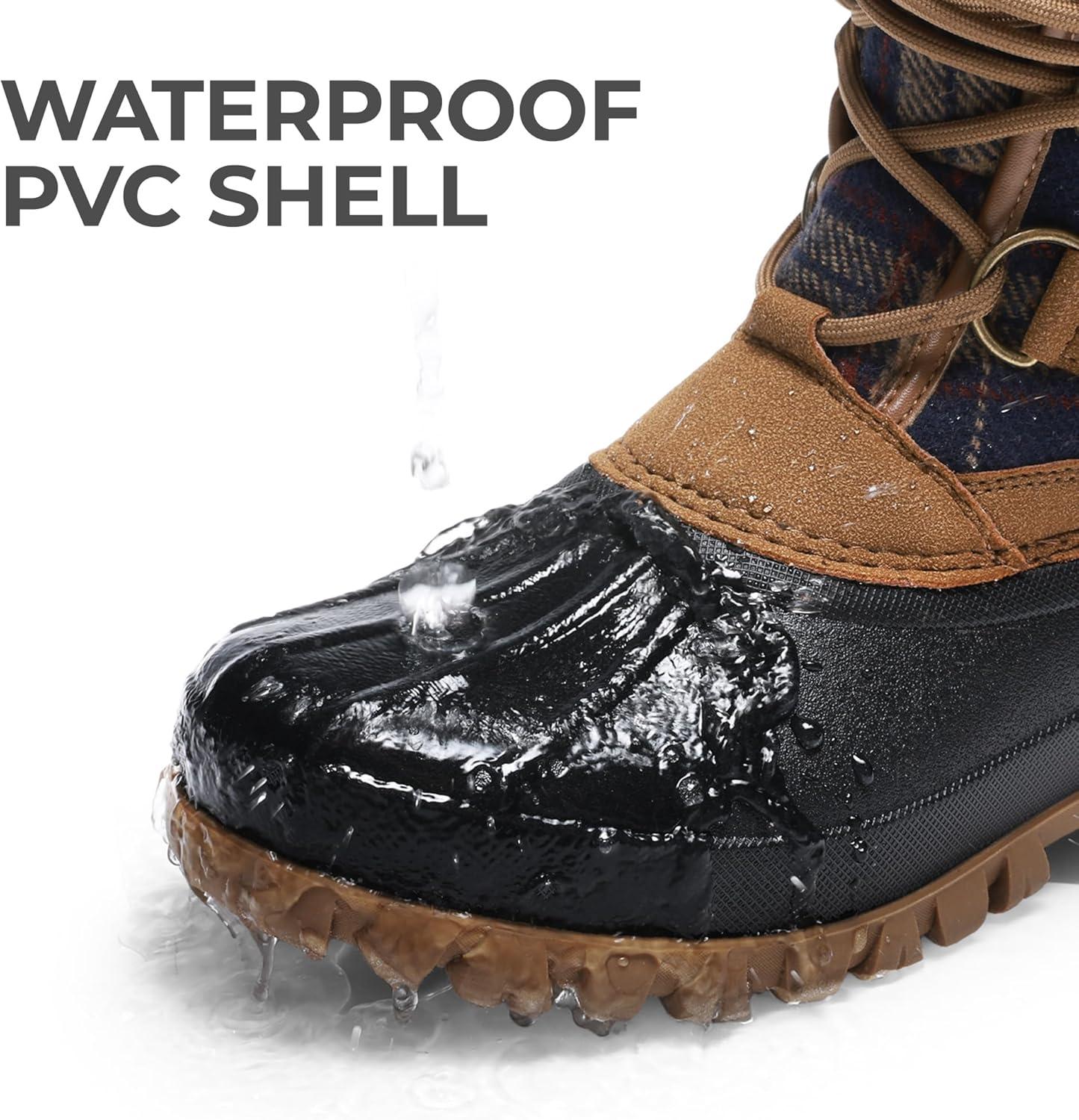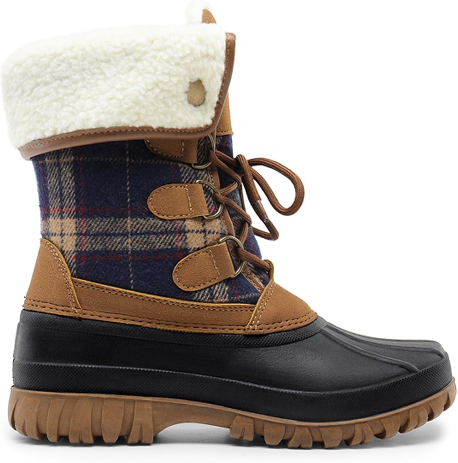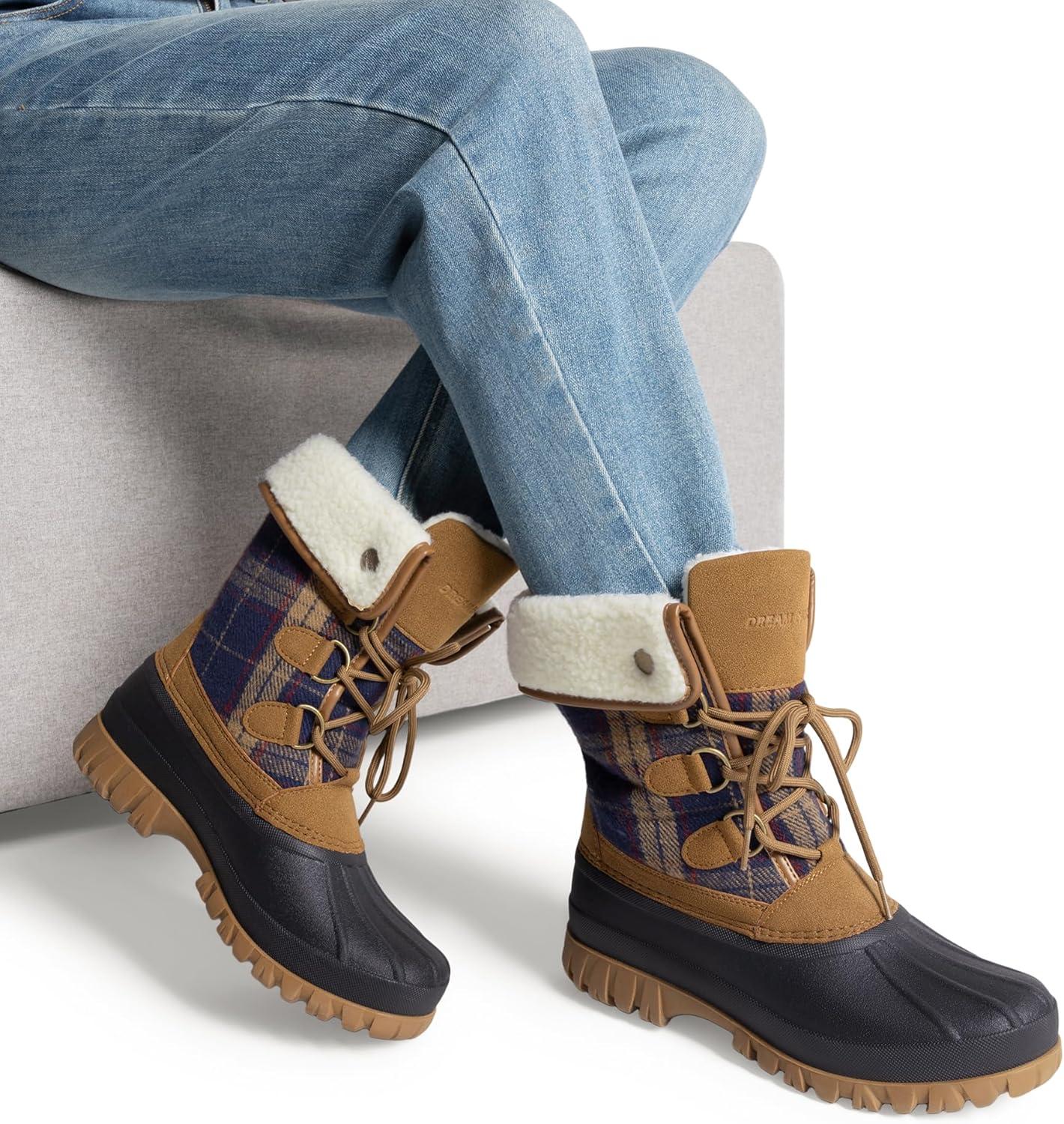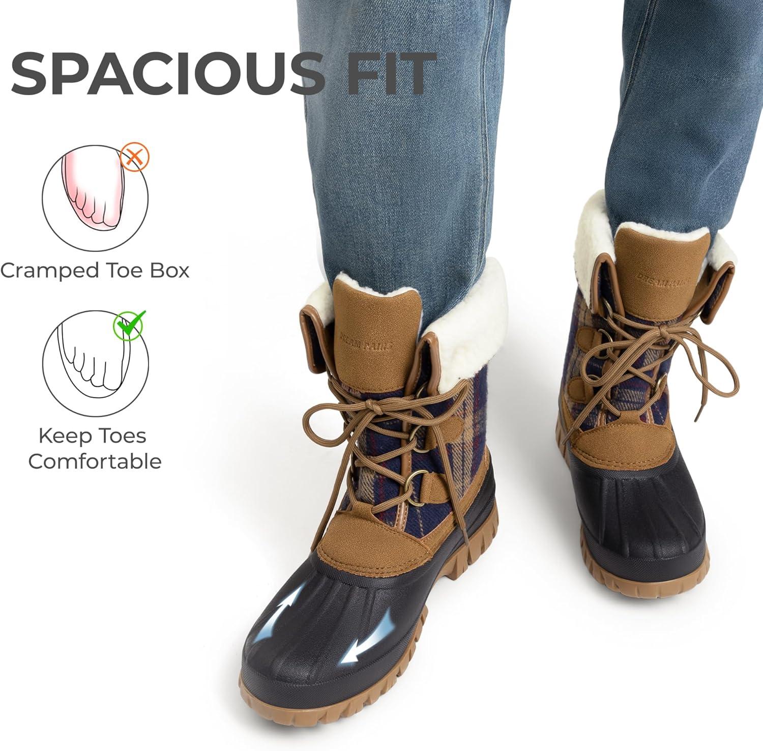 DREAM PAIRS Womens Winter Snow Duck Boots,Waterproof Mid Calf Anti-slip Stability Lace Up Faux Fur Lining Warm Cozy Boots Outdoor Supportive Insole(Tan)
